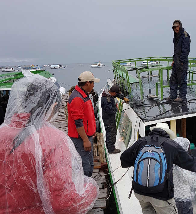 Roughly 40 minutes away from the town, you have to stop to cross a narrow stretch of water – the Straight of Tiquina. And crossing it is an amazing spectacle.